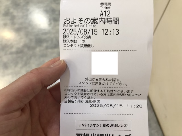 筆者が行った日は平日だったにも関わらず混んでいて、視力測定サービスに整理券が配布されていました。