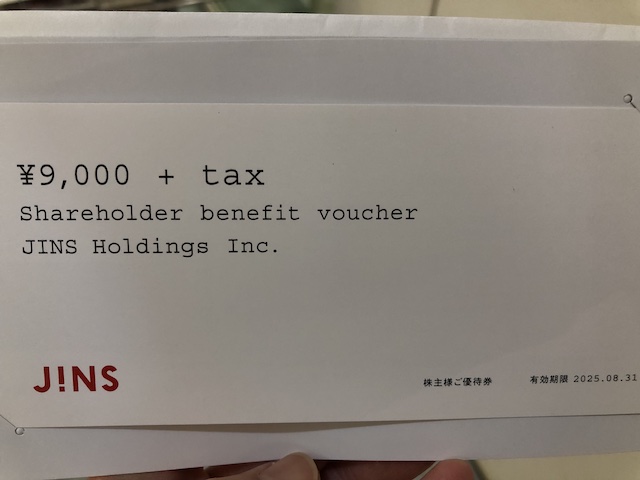 眼鏡のチェーン店「JINS」を展開する株式会社ジンズホールディングスから、株主優待券が送られてきていました。