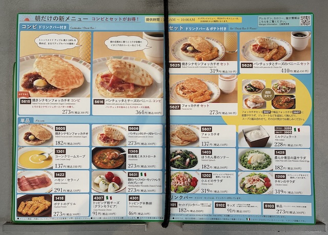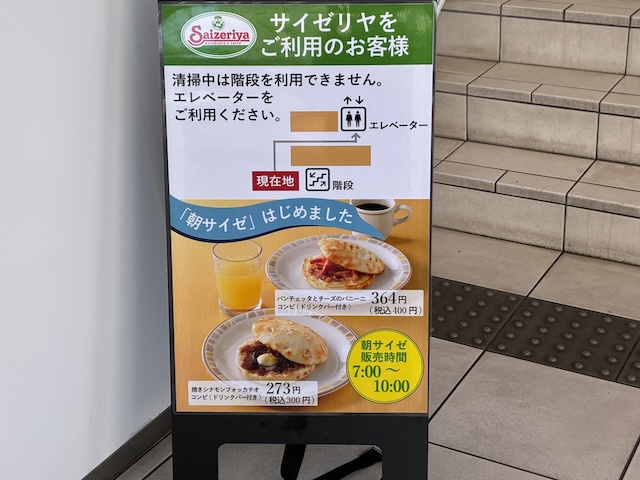 お店の前に、朝サイゼのメニュー表が置かれていました。