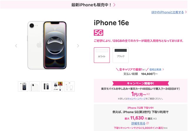 今回、筆者が乗り換えを決めたきっかけは、楽天モバイル買い替え超トクプログラム「iPhone16e128GB購入1円キャンペーン」です。