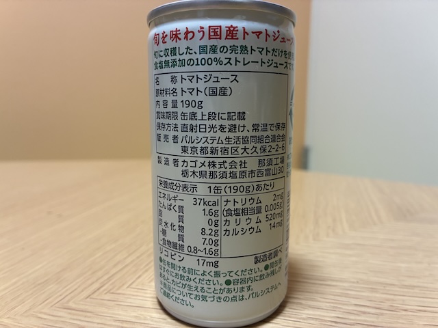 いつも利用している生協(パルシステム)のカタログに「食塩無添加、国産」と書かれたトマトジュースが安く出ていました。