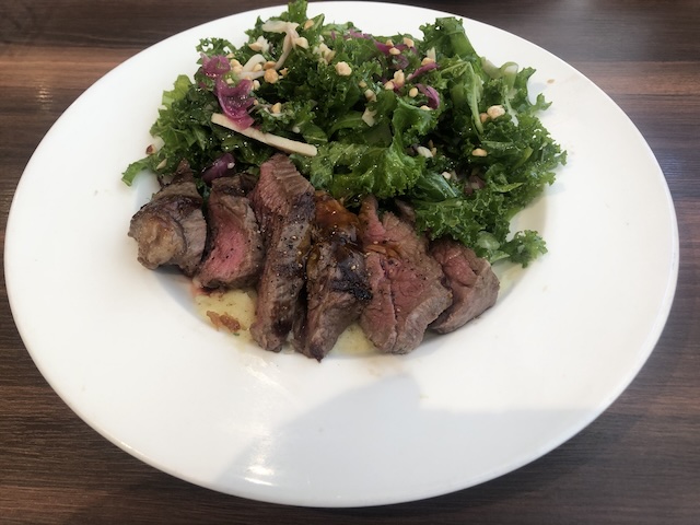 写真↓はランチセットではなく、グランドメニューのアンガスサーロインステーキサラダですが、高級感が伝わると思います。