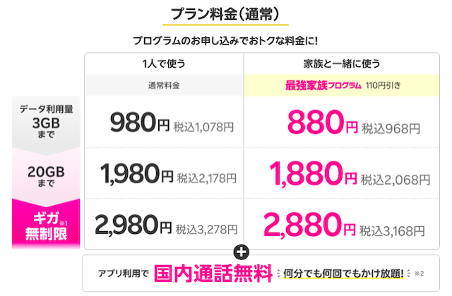 楽天モバイルに加入して30ギガを使ったと仮定すると、毎月の利用料は家族割利用でも3,000円以上かかってきます。